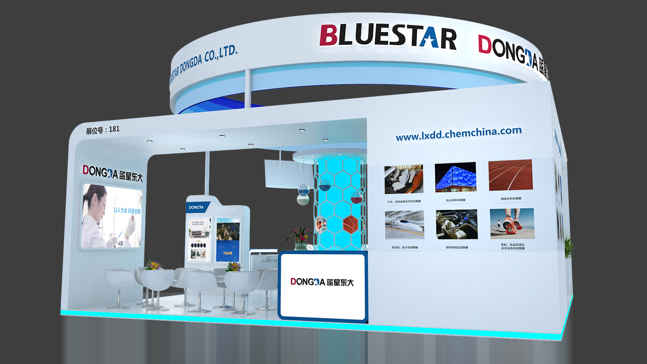 山東藍(lán)星東大有限公司是國(guó)家大型企業(yè),隸屬于中國(guó)化工集團(tuán)下屬的中國(guó)藍(lán)星(集團(tuán))股份有限公司,山東省高新技術(shù)企業(yè),國(guó)家火炬計(jì)劃重點(diǎn)高新技術(shù)企業(yè)。主要產(chǎn)品及規(guī)模為9萬(wàn)噸環(huán)氧丙烷、25萬(wàn)噸聚醚多元醇,聚醚多元醇是中國(guó)石化行業(yè)知名品牌、山東省名牌產(chǎn)品。公司秉承發(fā)展“綠色化工”的理念,已成為我國(guó)重要的化工新材料生產(chǎn)基地。同時(shí)公司堅(jiān)持走出去戰(zhàn)略,積極參與國(guó)際競(jìng)爭(zhēng),努力開(kāi)拓國(guó)際市場(chǎng),與世界上30多個(gè)國(guó)家和地區(qū)開(kāi)展了貿(mào)易往來(lái),逐步成為一個(gè)充滿生機(jī)和活力的現(xiàn)代大型化工企業(yè)。藍(lán)星東大在中國(guó)國(guó)際化工展覽會(huì)設(shè)計(jì)展臺(tái)搭建上表現(xiàn)搶眼,中勵(lì)展覽能夠?yàn)榭蛻敉昝澜桓陡黝愓古_(tái)設(shè)計(jì)搭建。