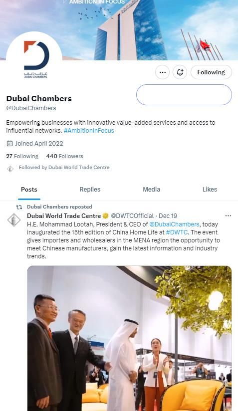 中勵(lì)展覽此次搭建的參展展臺(tái),展位設(shè)計(jì)簡(jiǎn)潔大方,為展品營(yíng)造了完美的展示空間,特別是在展臺(tái)中央“種”下了一顆郁郁蔥蔥的大樹(shù),為展臺(tái)增添了綠色和活力,充分展現(xiàn)了中勵(lì)設(shè)計(jì)對(duì)于創(chuàng)新和高品質(zhì)的追求。H.E. Mohammad Lootah認(rèn)真觀(guān)看了展位上的產(chǎn)品,并傾聽(tīng)了現(xiàn)場(chǎng)工作人員的講解。阿聯(lián)酋商會(huì)官方平臺(tái)@Dubai Chambers也對(duì)此次參觀(guān)做了報(bào)道。