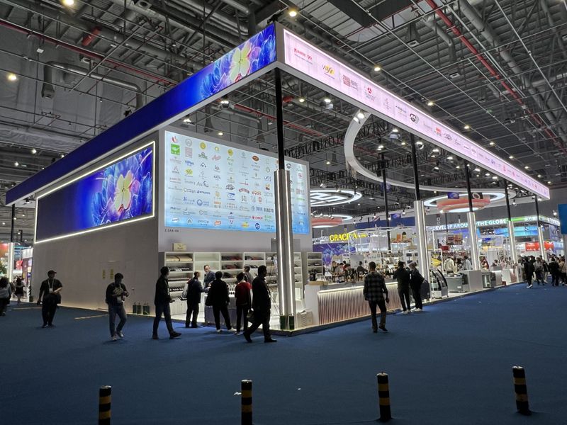 采用可循環(huán)鋁合金型材(利舊率≥95%)、環(huán)保涂料(VOC排放趨零)、LED節(jié)能光源。據(jù)麥肯錫調(diào)研,73%進(jìn)博觀眾對(duì)可持續(xù)展臺(tái)有明確好感度。